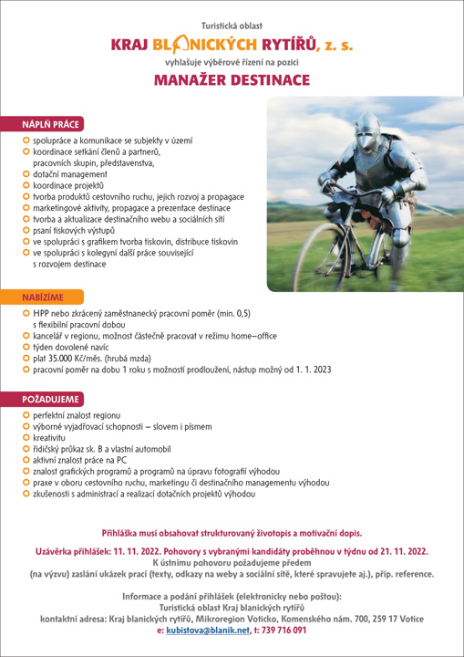 Kraj blanických rytířů hledá manažera.