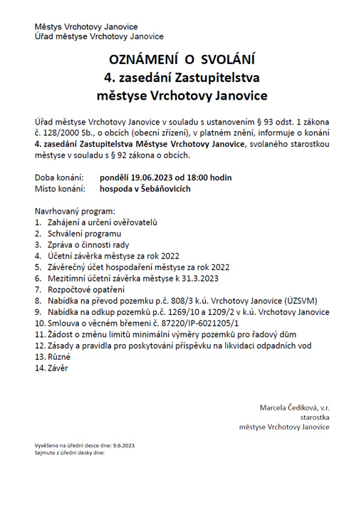 4. zasedání zastupitelstva se uskuteční v pondělí 19.6.2023 od 18.00 v hospodě v Šebáňovicích