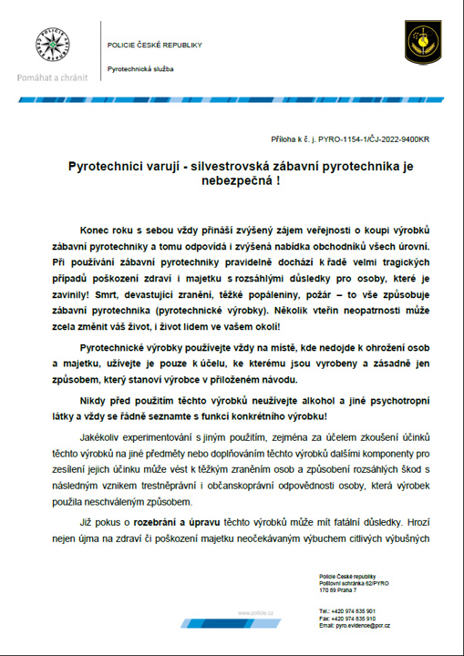 Při používání zábavní pyrotechniky pravidelně dochází k řadě velmi tragických případů poškození zdraví i majetku s rozsáhlými důsledky pro osoby, které je zavinily! Smrt, devastující zranění, těžké popáleniny, požár – to vše způsobuje zábavní pyrotechnika (pyrotechnické výrobky). Několik vteřin neopatrnosti může zcela změnit váš život, i život lidem ve vašem okolí!